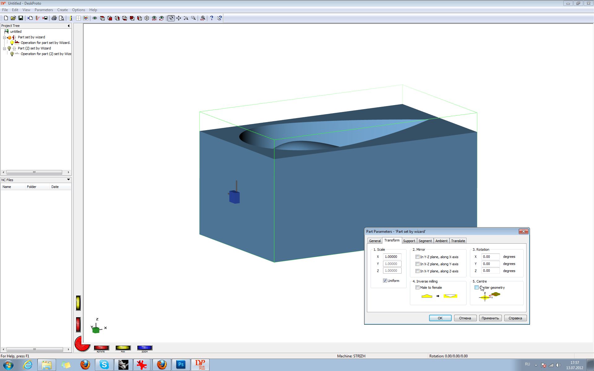 4)снимаем чекбокс в centre geometry