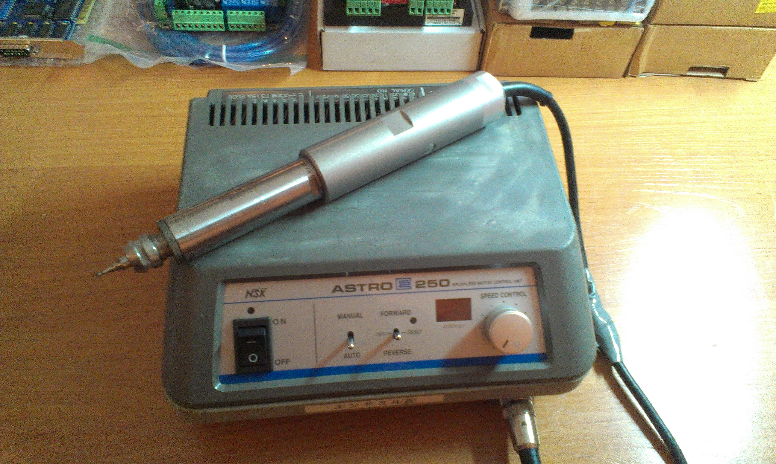 Второй шпиндель NSK NAKANISHI ASTRO-E250 Б/У работает от сети 110V максимальные обороты шпинделя 25000 об/мин мощностью 105W автоматический сброс тока при нагрузке в комплекте 1цанга на 6мм, здесь можно по подробней узнать о всех технических особенностях этого шпинделя http://www.nskamericacorp.com/prod_mach ... oe250.aspx. ЦЕНА: 25000 рублей